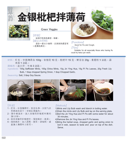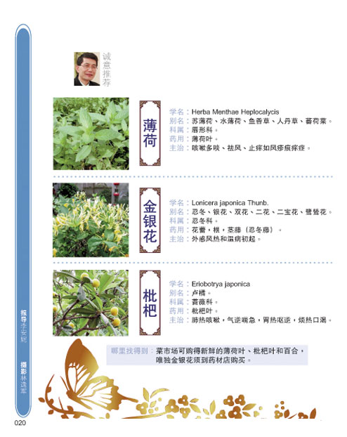 金银枇杷拌薄荷:- 清热解毒,去啖止咳