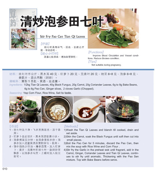 清炒泡参田七叶:- 专治内伤