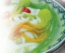坐月子食疗(六)关键性产后第一餐 ― (光华日报)-[食疗药膳] 茯苓山药龙凤面 【配料】:面粉100g,鸡蛋1粒,淮山粉10g,茯苓粉6g,菜心或小白菜50g,生葱1根,生姜汁5g,鸡肉100g,鲜虾3只,鸡汤300-500ml,酱油5ml... 【功能】:益气补血,养心安神,健脾和胃,养肝补肾。 【适应症】:产后体弱,疲倦乏力,腰酸怕冷,腹胀、食欲差,睡眠不佳。 【制法】:1. 鸡肉洗净、切丝,虾洗净、剥去外壳;菜心或小白菜减去老叶、黄叶,洗净,切成1-2cm的段;鸡蛋打入碗内,搅匀备用;葱去皮、洗净,切成葱花...