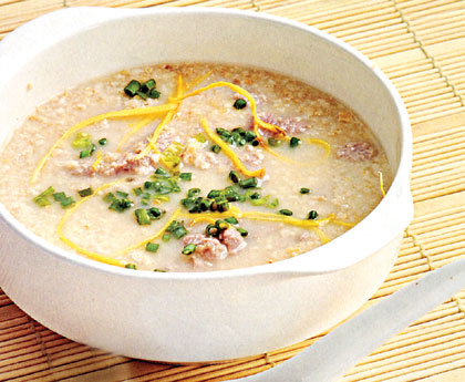 【配料】陈皮10g、白萝卜30g、胡萝卜20g、猪瘦肉40g、白米50g、盐3g、柠檬肉10g或柠檬汁半汤匙。