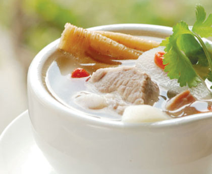 配料:面粉200g,怀山粉20g,苏打粉2g,党参6g,干姜6g,陈皮3g,白朮3g,鸡汤1碗,酱油15ml,麻油5ml,食盐3g,青菜50g,木耳10g,葱1根,生姜10g。
